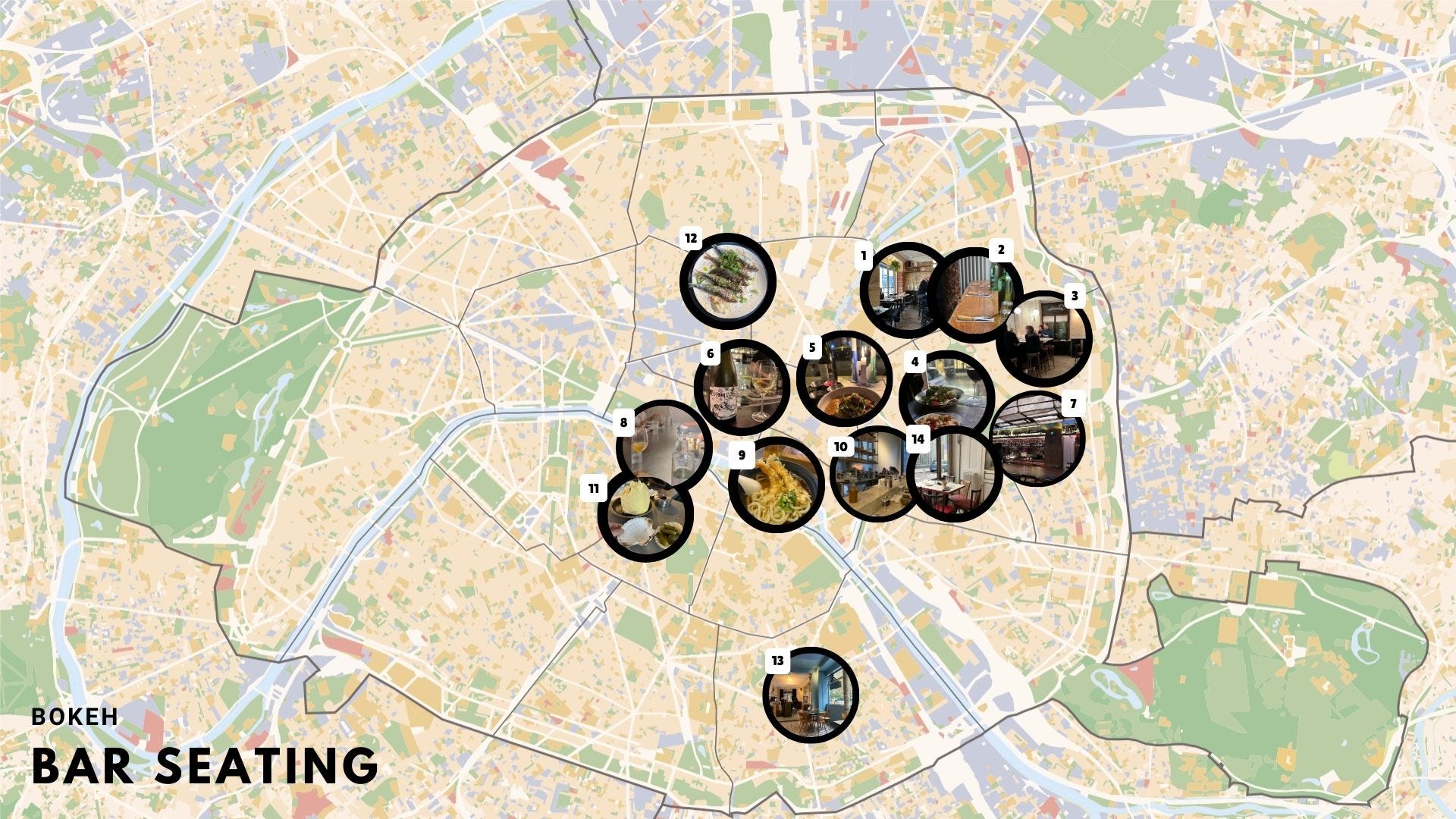 Below, you’ll find the map and a list of the bar seats we mentioned in our conversation. It’s by no means exhaustive, and please forgive my rudimentary design skills. The map isn’t quite to scale, but it should still lead you to the right places.