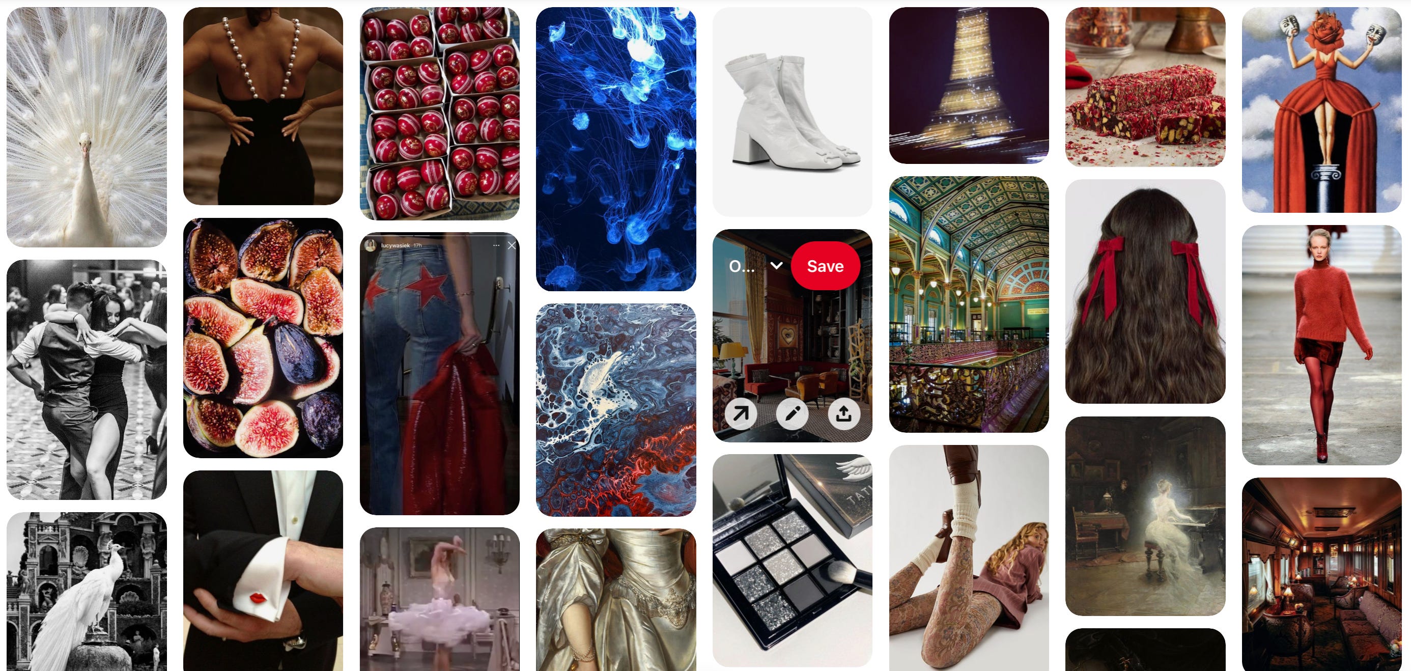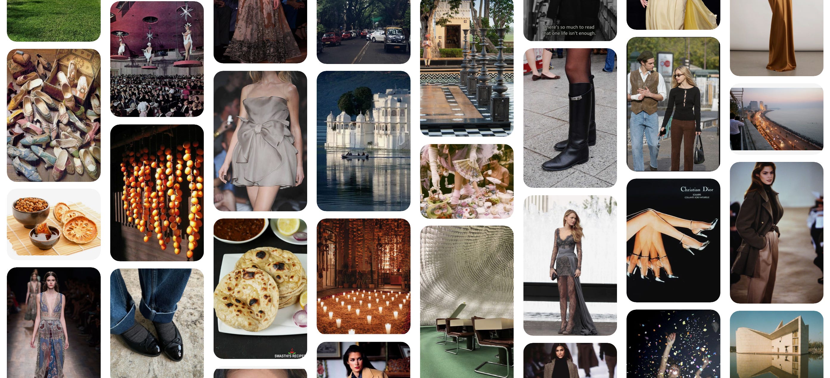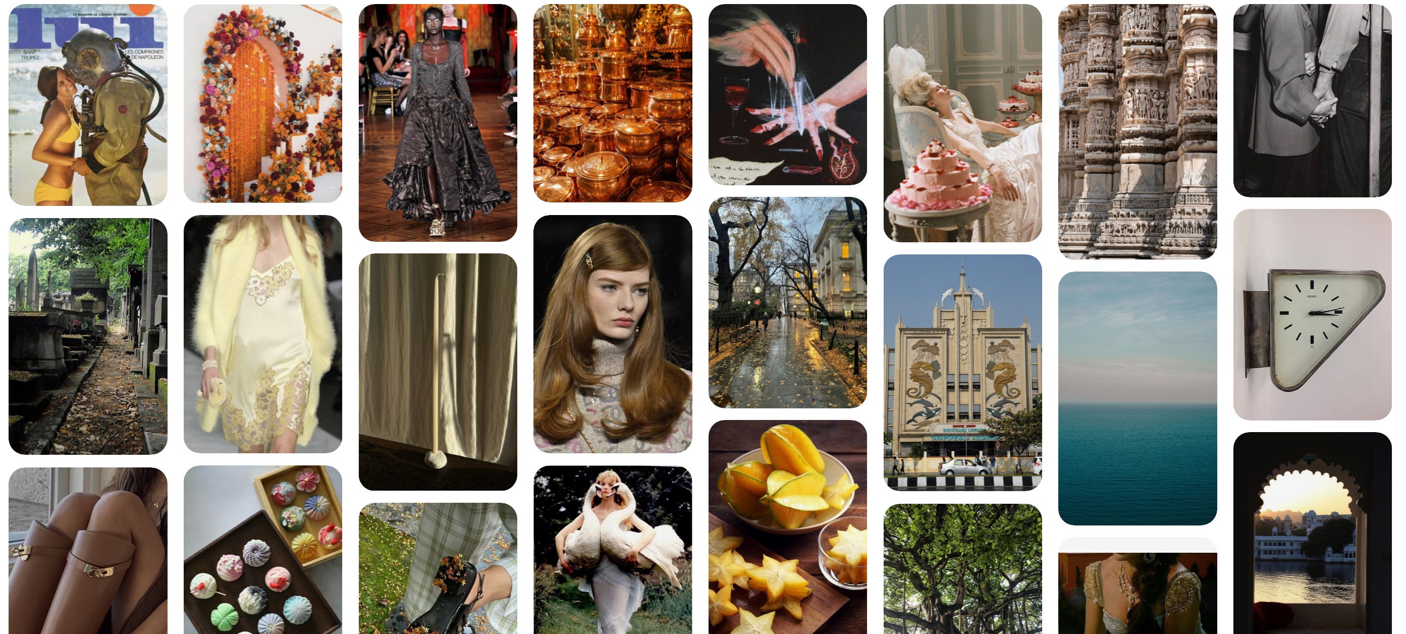 I start by titling the board—November 2023, for example—and start with a simple search tied to something I’m thinking about: rainy Paris in November, Dior lipstick in color Rendez-vous, cricket match championship, the copper-brown color of Turkish coffee sets.