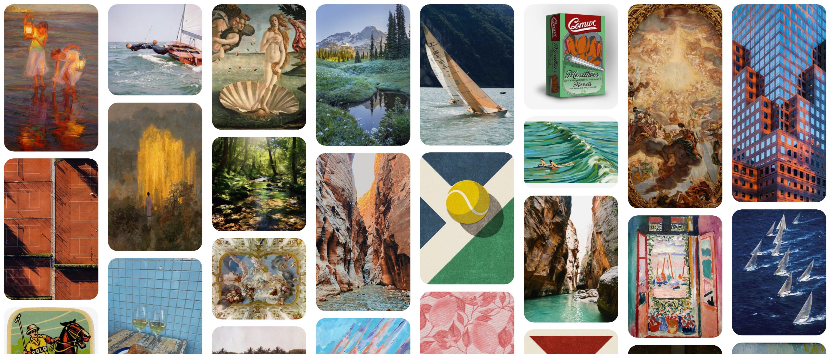 When we were talking about it, she mentioned that she makes mood boards every month. I never knew this about her, and didn’t understand how one could create a mood board for a period of time rather than for a specific project, so I asked: What do you mean? She pins images to a Pinterest board every month. When do you make the mood board? Just before the month begins. What is in each one? Whatever resonates with her at the time. How does she get started? She operates with stream-of-consciousness. She picks one image or topic and sees what happens after that.
